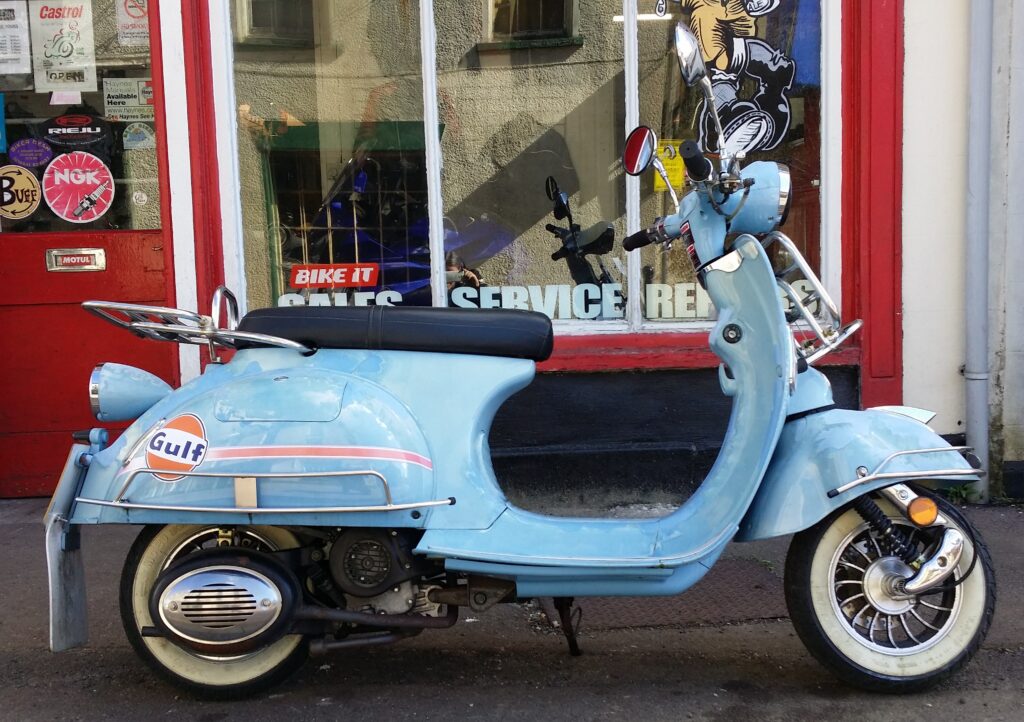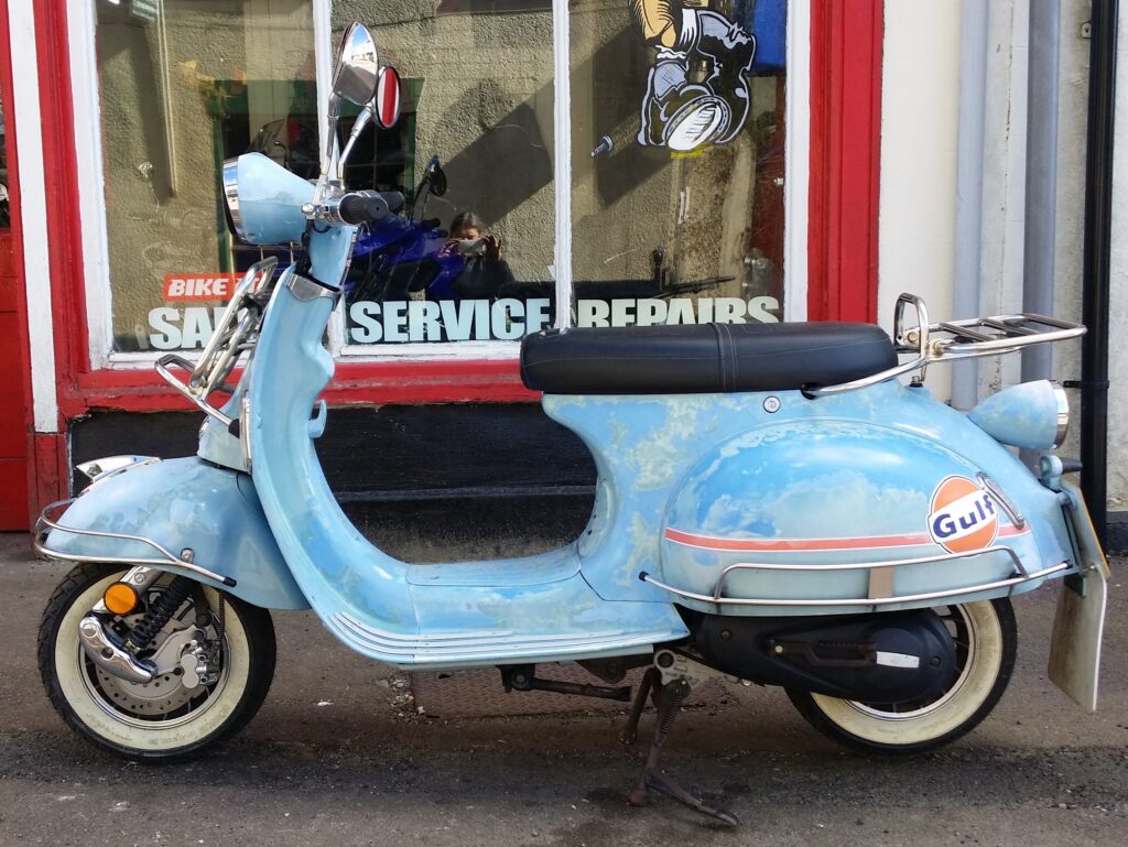 Extra retro looking example of Ajs’s scooter